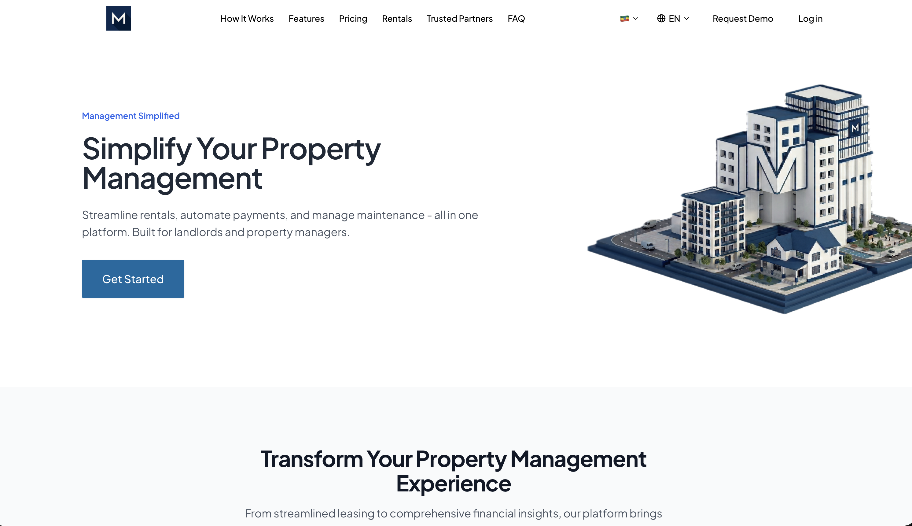 A modern property management platform for listings, leases, tenants, rent collection, maintenance requests, and financial reporting.